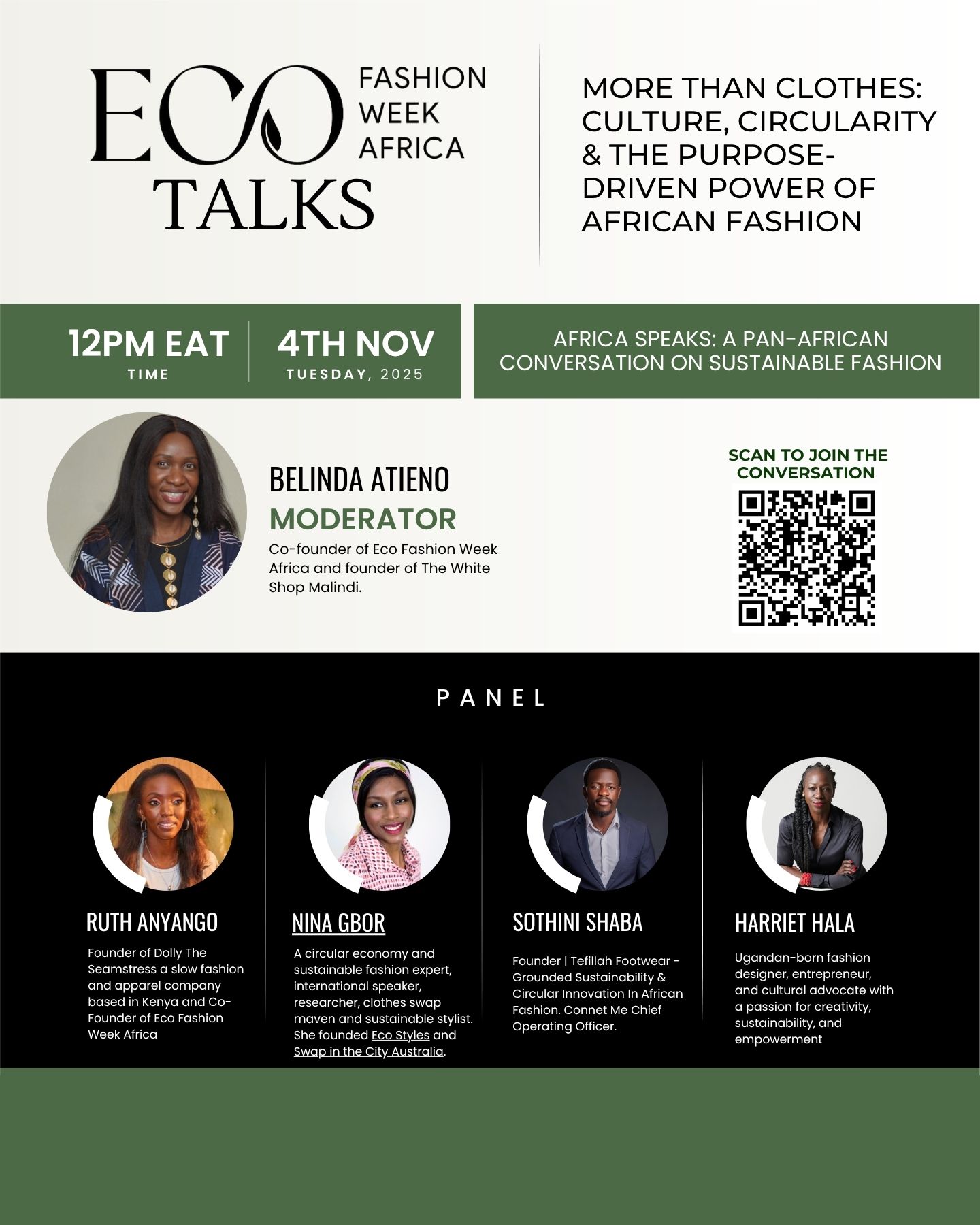 The international panel discussion brought together voices from across the fashion and sustainability space to explore culture, circular design, and the role of African fashion today. The conversation reflected a growing shift in how fashion is understood, not only as design, but as a system shaped by people, materials, and context.